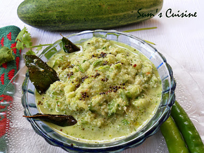 Mine, definitely is this Southekayi hasi gojju - cucumber chopped fine and mixed in an uncooked coconut gravy. Why? Because it is the easiest and quickest thing I can make provided I have cucumber in the fridge. And you want to make it still easier? Then you can just grate off the cucumber instead of chopping! All it takes is 10-12 minutes to get this dish done.